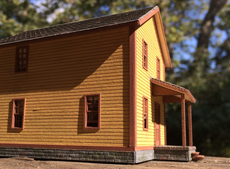 I've been waiting for my roadbed to arrive to begin the track laying phase of the railroad. I've been mostly putzing around the train room for the last few weeks. Today, I decided to jump in and do something I've been procrastinating. Back in January of 2017, I posted in Company House about my first craftsman kit build. Well, the little house has been sitting idle for a while mostly because the next step was to weather to roof a bit. I didn't feel confident I wouldn't ruin it. I've read a lot about weathering and how little goes a long way. I think the house is looking pretty good.